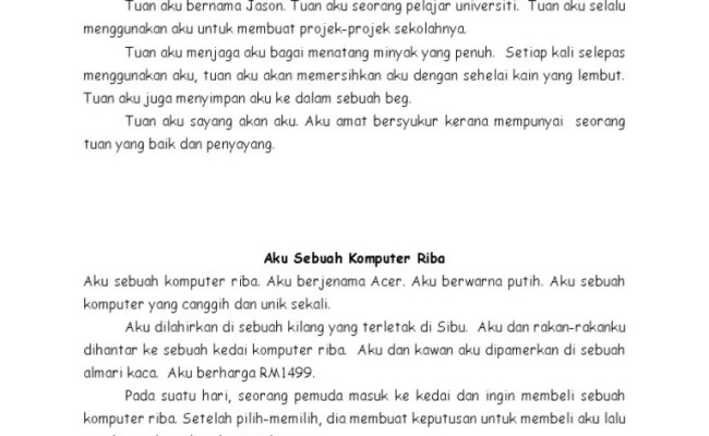 Aku tinggal di sebuah pasaraya terkemuka ibu kota. Karangan jenis autobiografi 2 tulis sebuah karangan yang bertajuk "aku sebuah kereta". Memudahkan mereka.) aku sebuah eskalator 30.09.2021. Aku dilahirkan di sebuah kilang televisyen panasonic di . Insiden berlaku pada 23 julai lalu di sebuah pusat membeli belah di george town. Contoh karangan pendek aku sebuah komputer riba malayhisn.